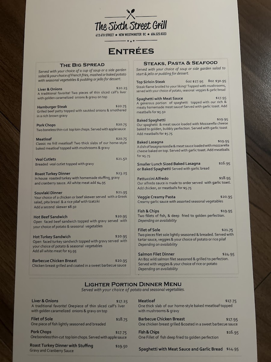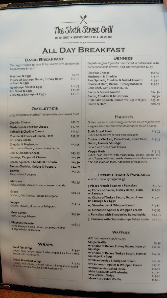 Welcome to Sixth Street Grill, a charming diner nestled in New Westminster, BC, where hearty comfort food meets warm hospitality. This beloved eatery offers a diverse menu, perfect for any time of day.